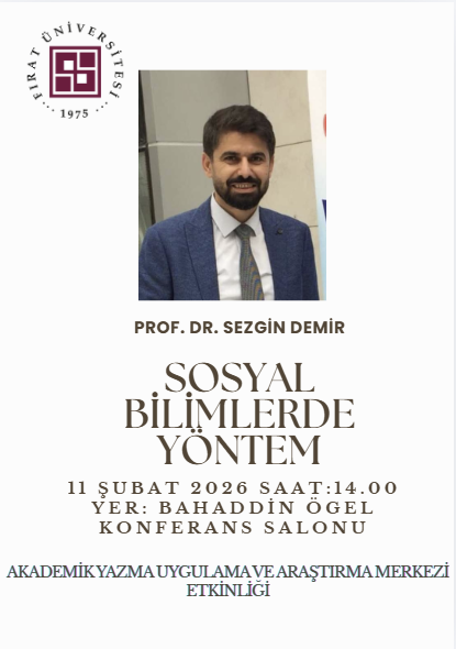 Within the scope of an academic event organized by the Academic Writing Application and Research Center of Fırat University, a lecture entitled “Research Methods in Social Sciences” will be delivered by Prof. Dr. Sezgin Demir.